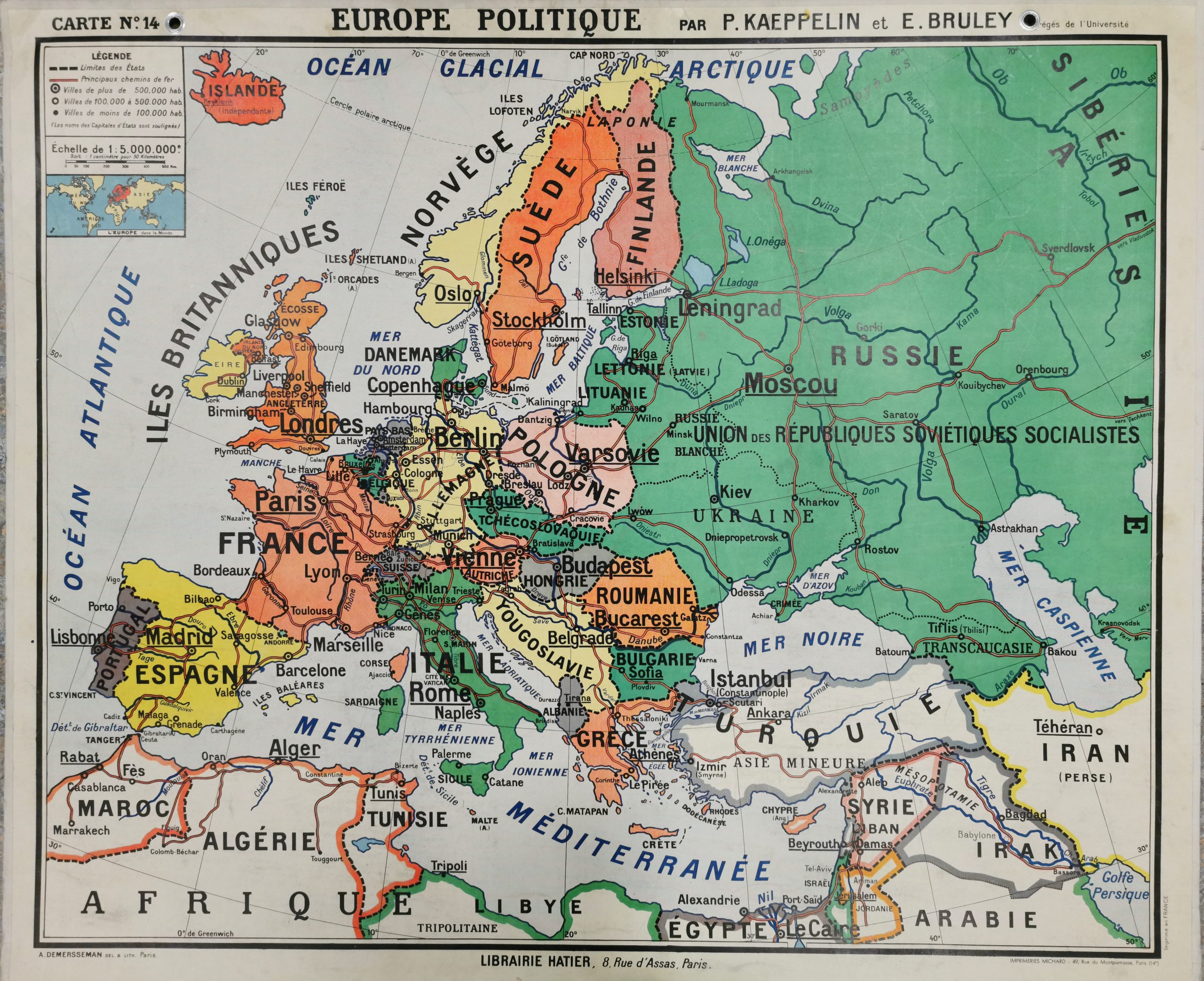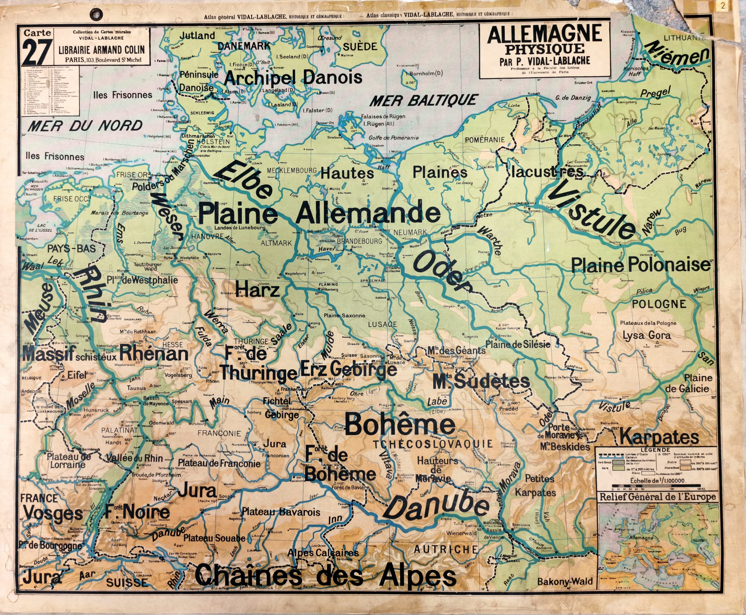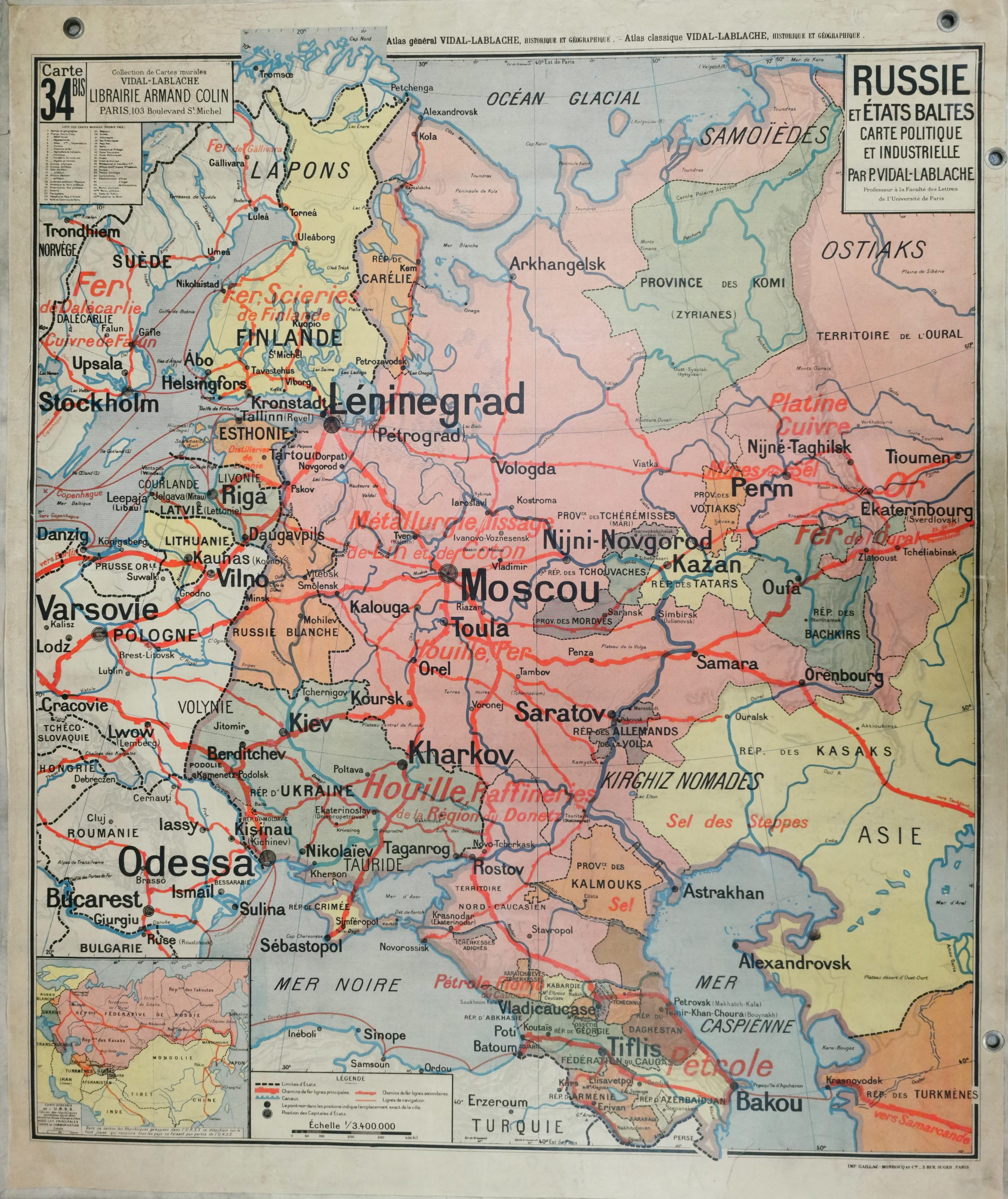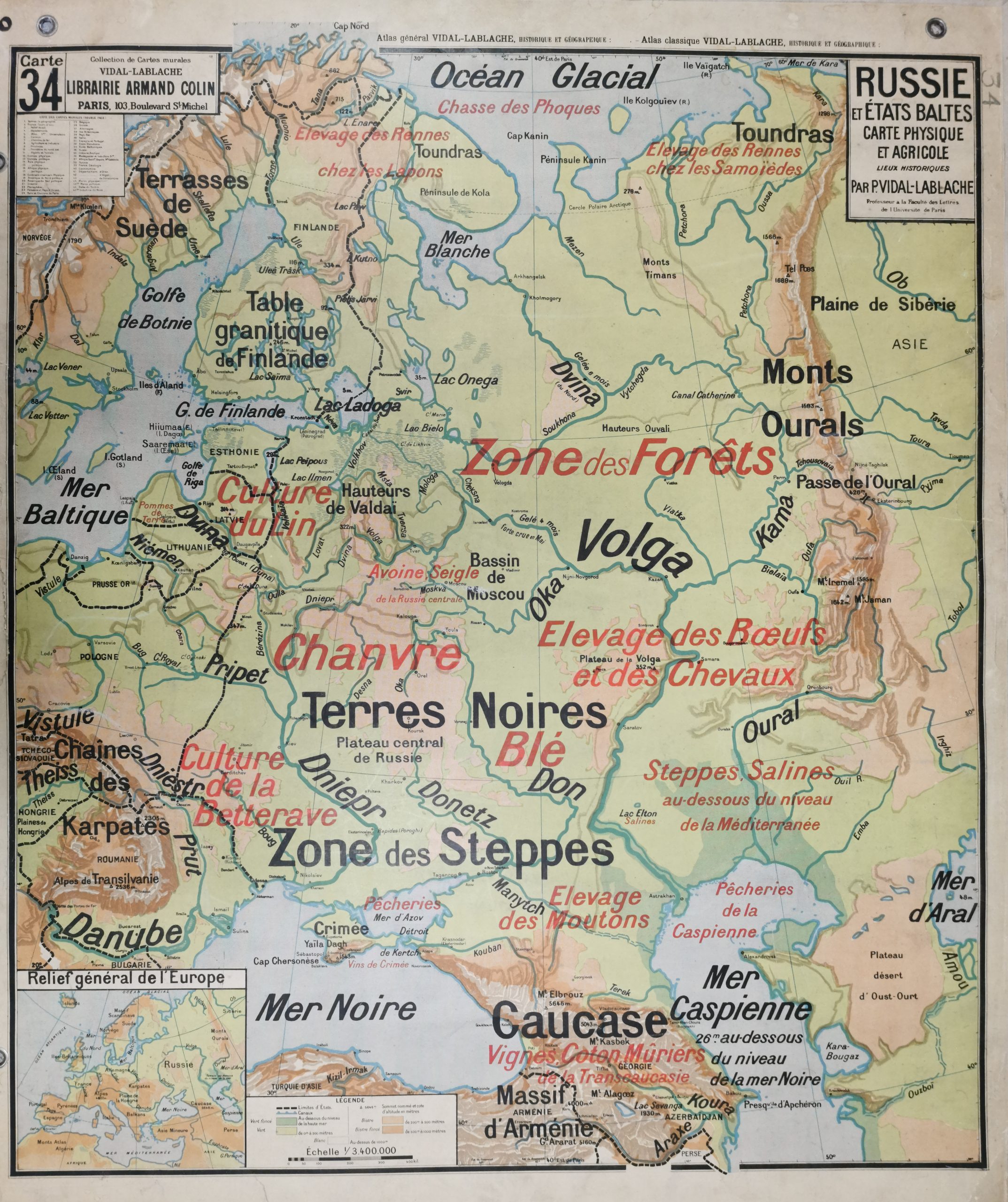 Edition :  Collection des cartes murales Vidal-Lablache / Librairie HATIER / Imprimerie: MICHARD, Paris.