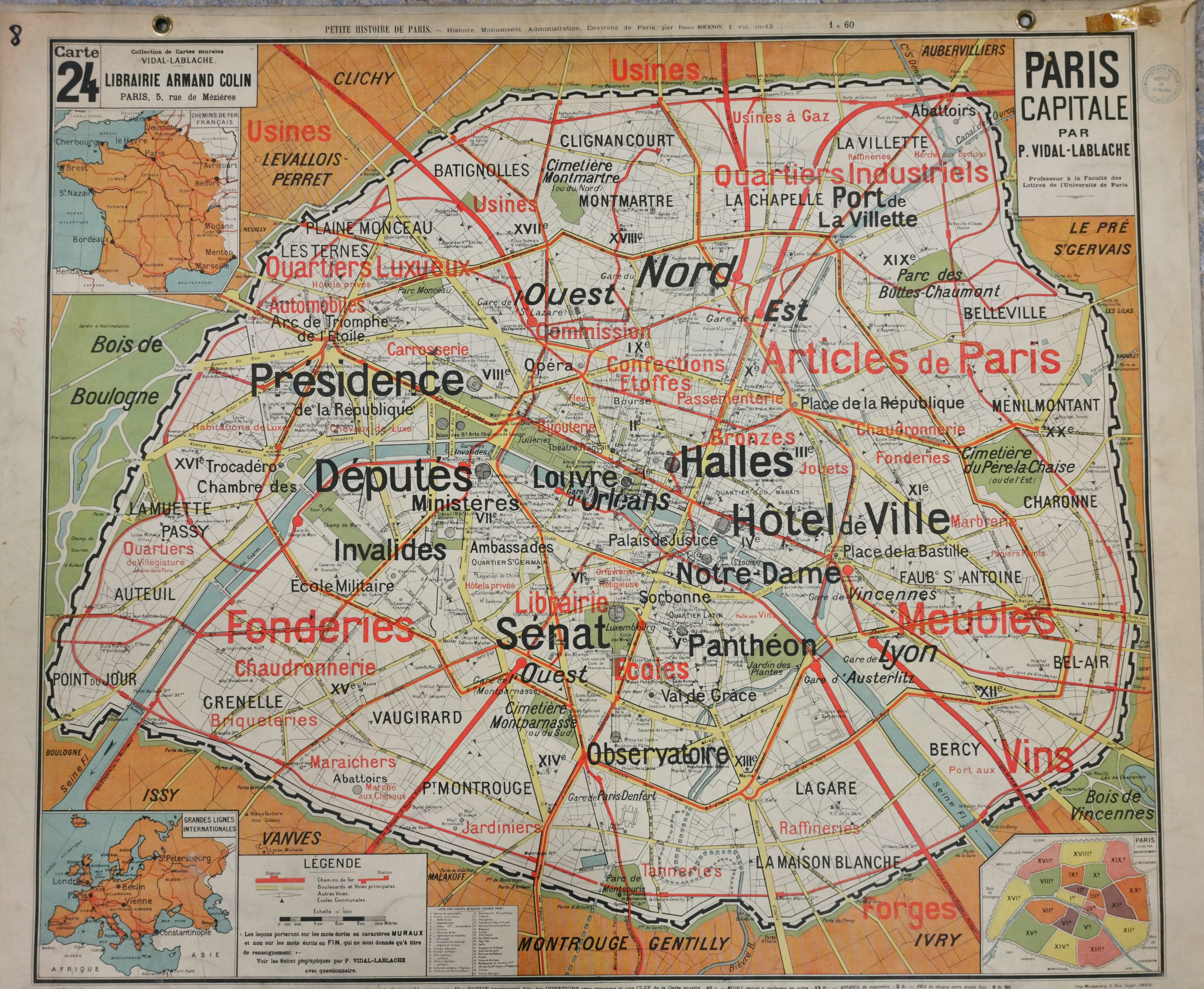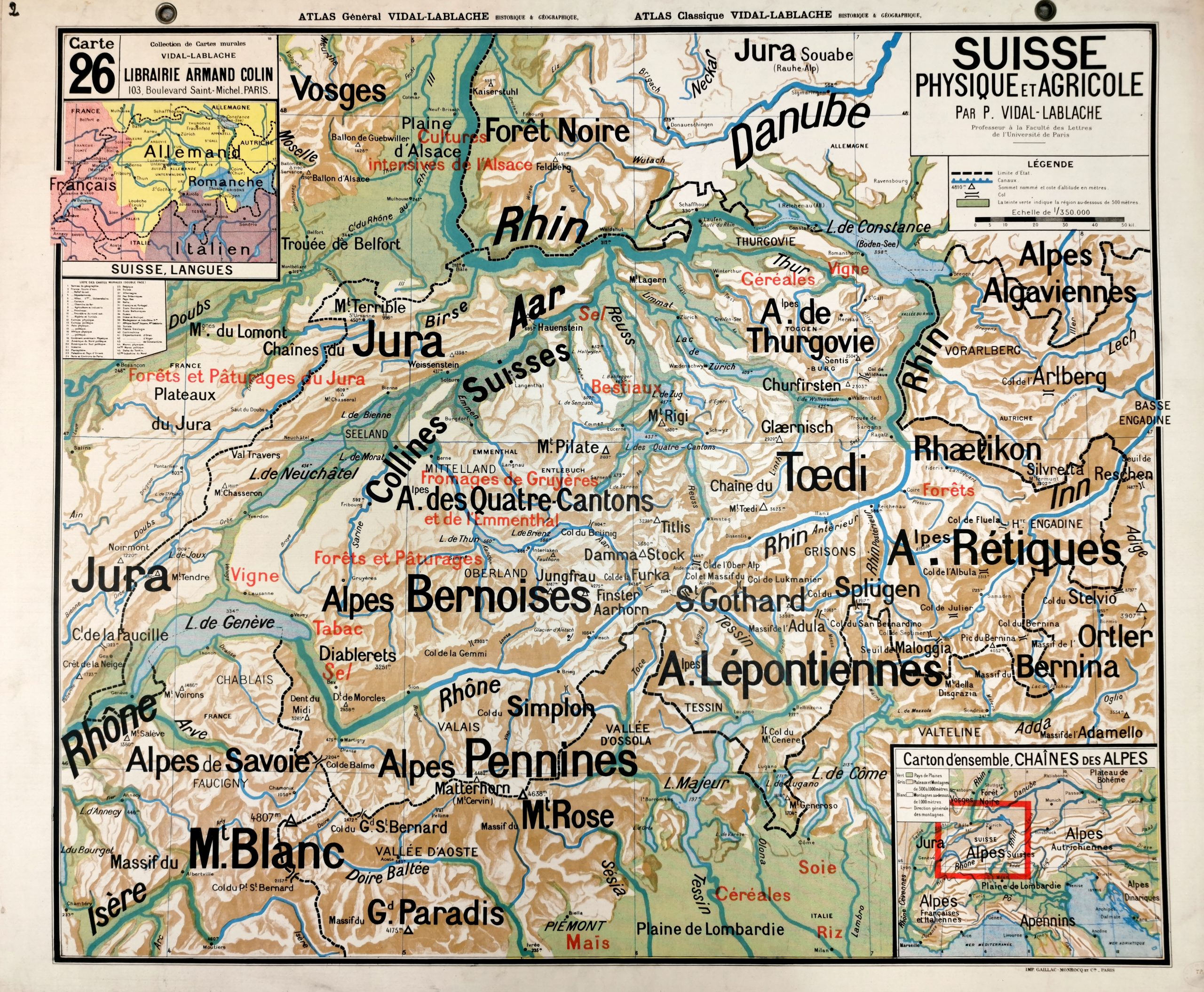 Edition :  Collection de cartes murales VIDAL-LABLACHE.  / Librairie ARMAND COLIN/ Imprimerie:  Gaillac-Monrocq et Cne Paris