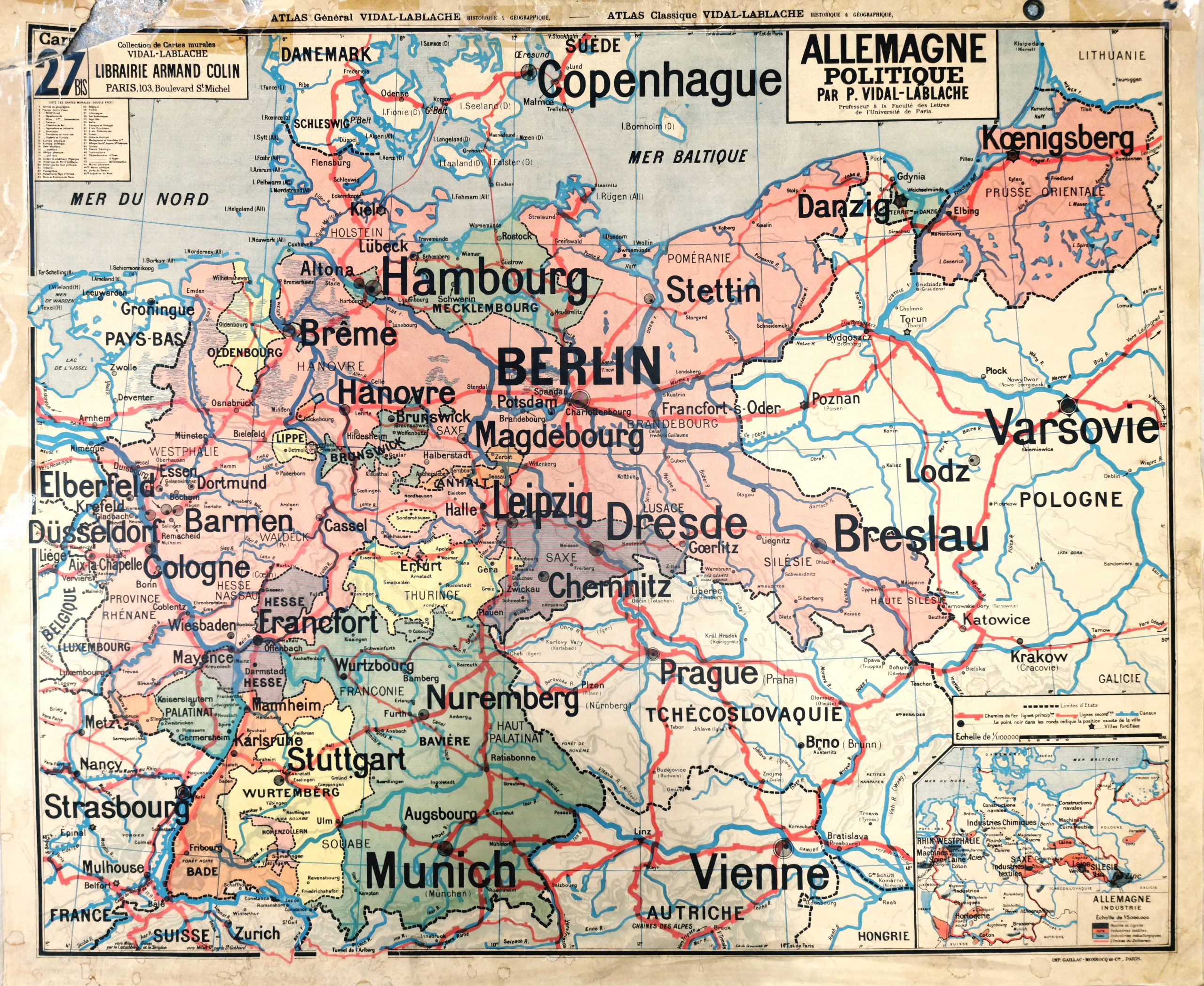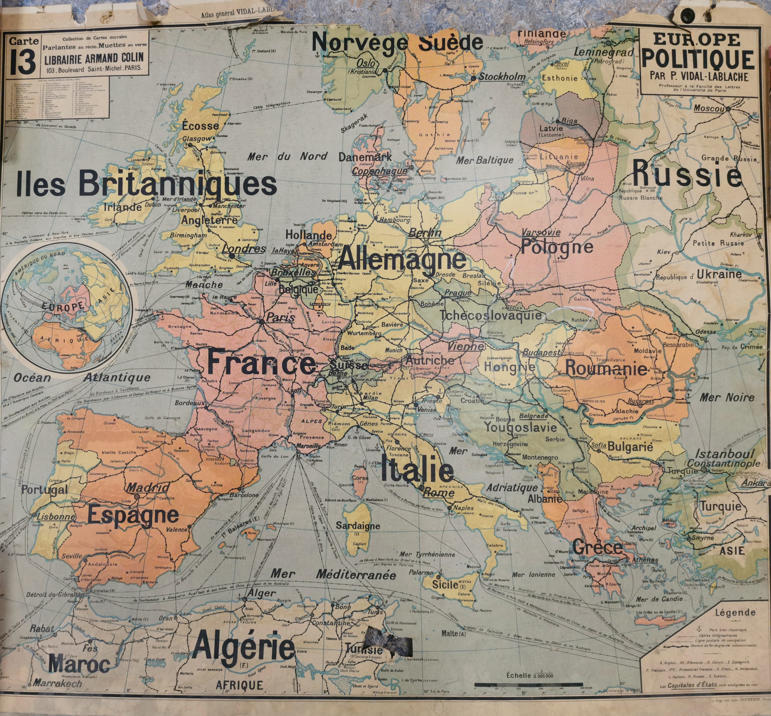 Edition : Collection de cartes murales VIDAL-LABLACHE. Atlas Général Vidal-Lablache Historique et géographique. / Librairie ARMAND COLIN Paris / Imprimerie: GAILLAC-MONROCQ et Cne Paris