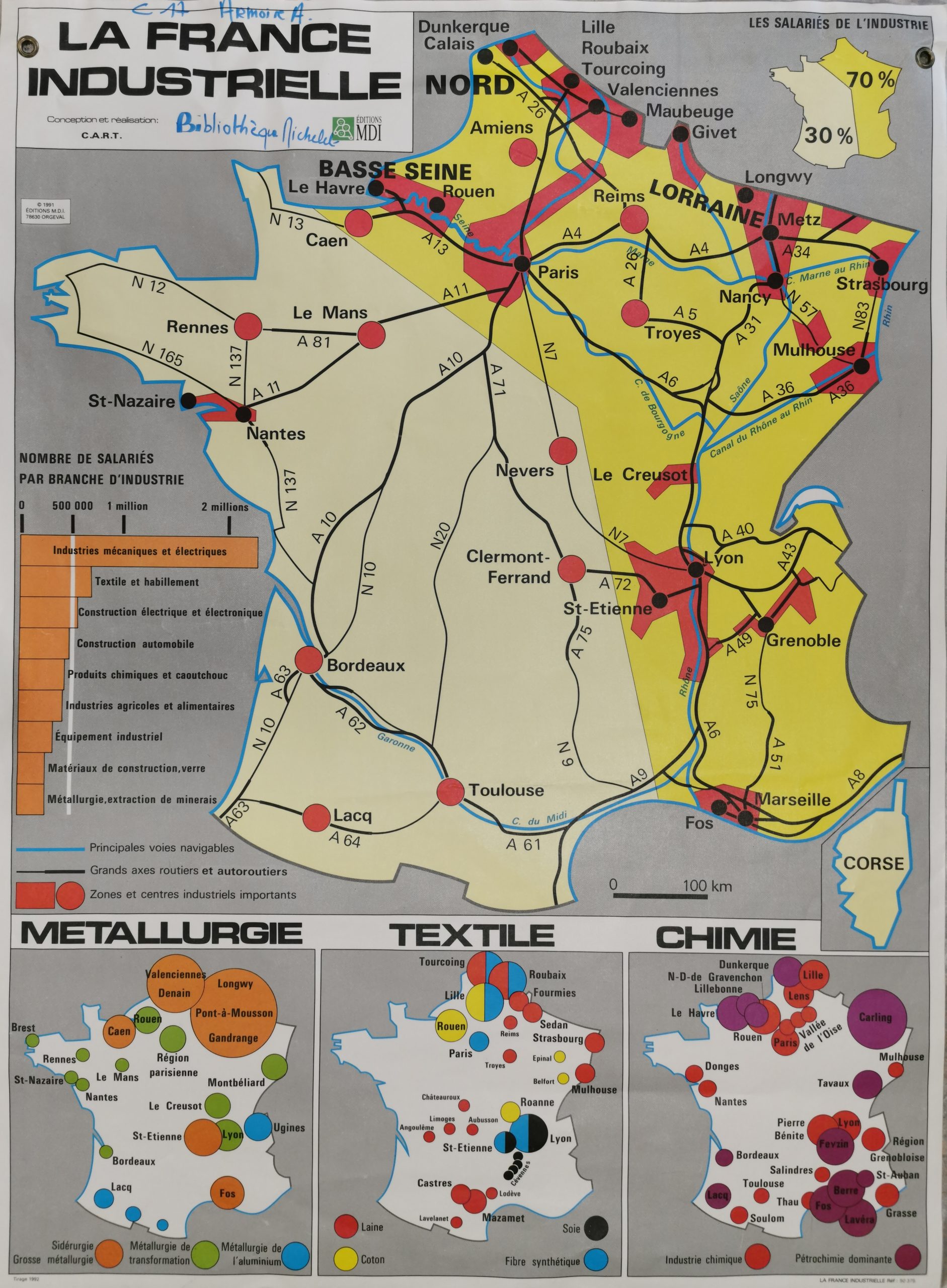 Encart: 3 en bas : cartes de France avec Métallurgie, Textile et Chimie