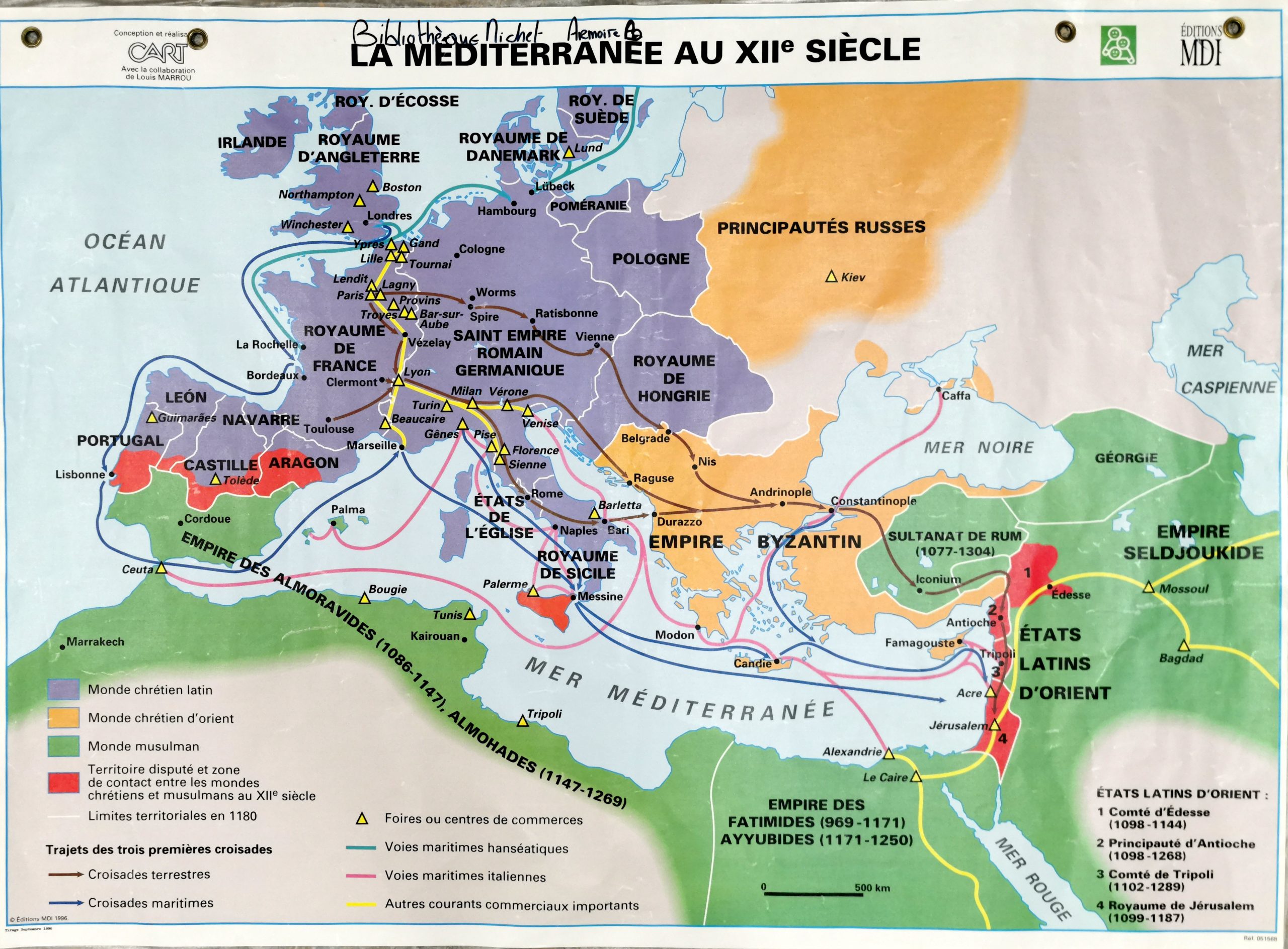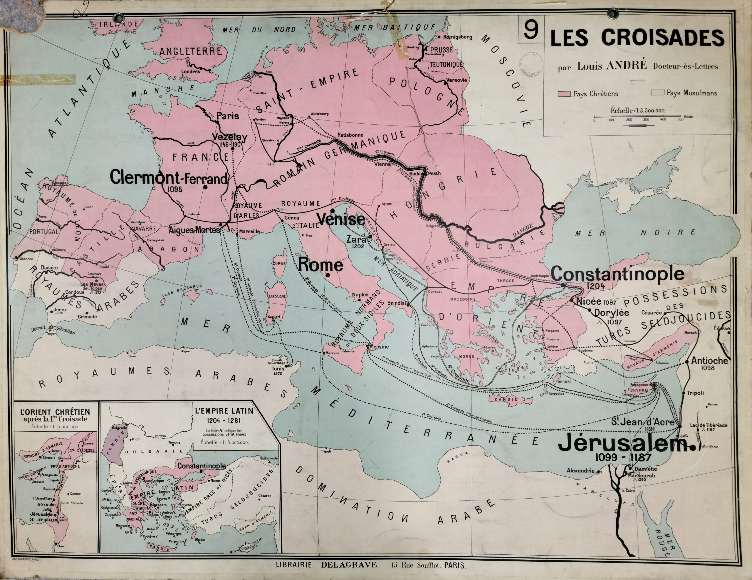 Encart: 2 en bas à gauche : L’Orient chrétien après la 1ère Croisade et l’Empire latin 1204-1261, éch. 1/5 000 000.
