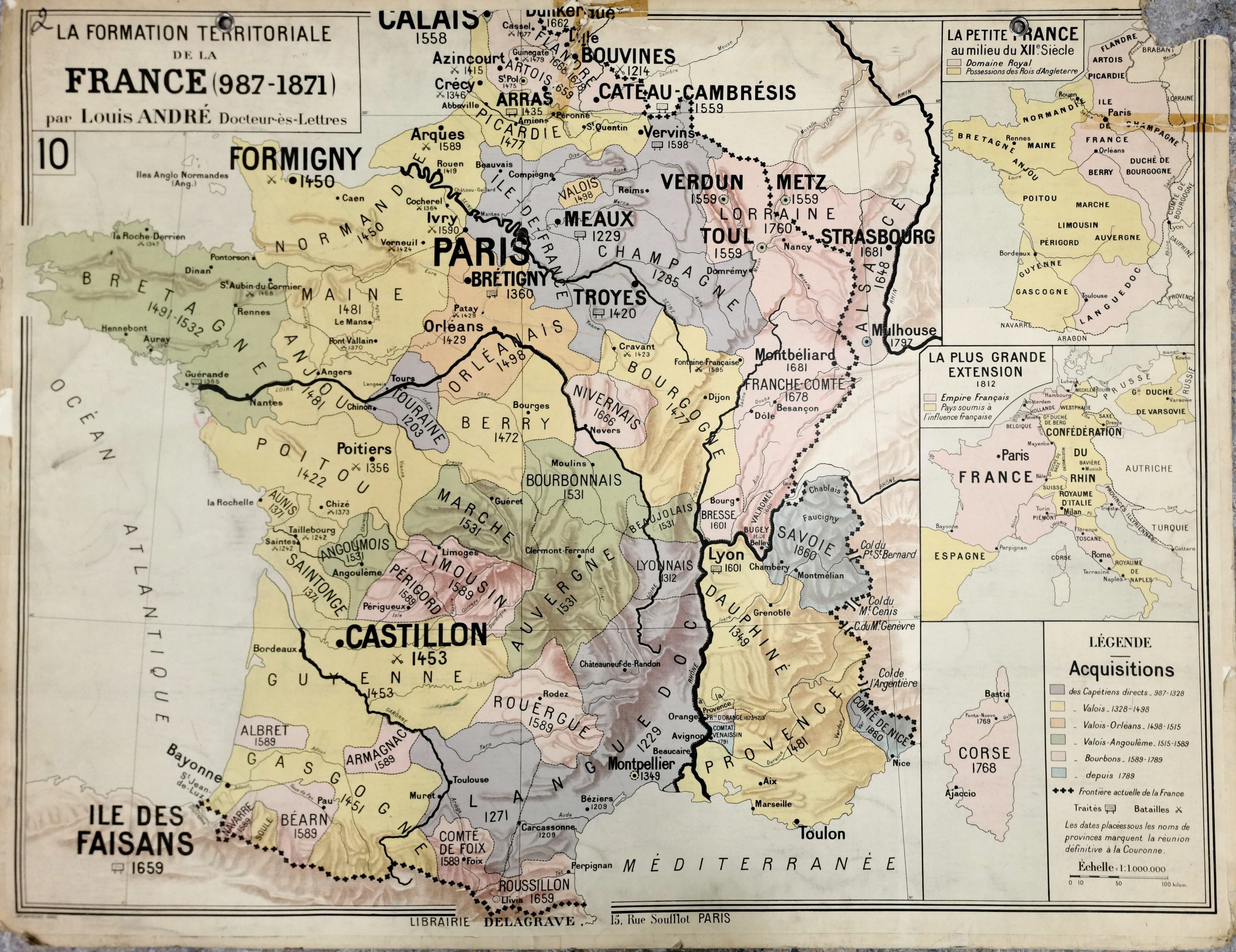 Encard: 3 à droite : La petite France au XIIe siècle, la plus grande expansion 1812, Corse 1768.