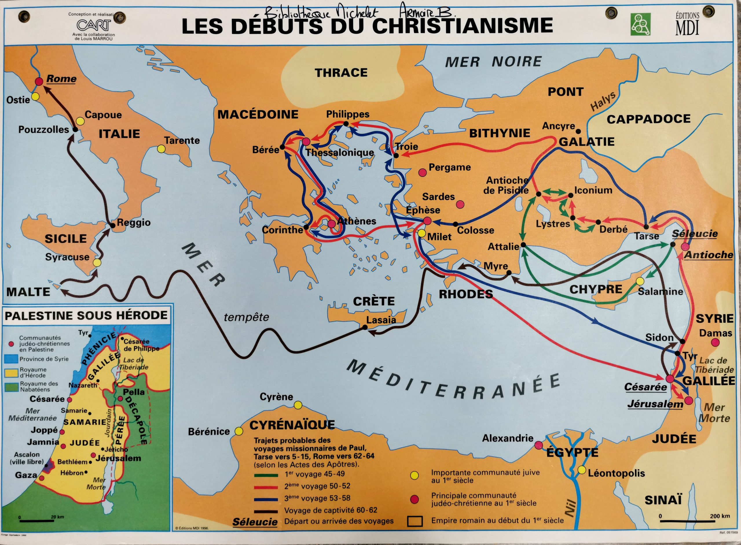 Description: Trajets probables des missionnaires de Paul. Communautés juive et judéo-chrétienne.